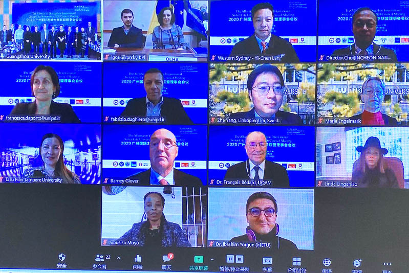 會(huì)議內(nèi)容: 12月2日,廣州國際友城大學(xué)聯(lián)盟2020年理事會(huì)會(huì)議在廣大校內(nèi)召開,此次會(huì)議以“攜手應(yīng)對(duì)后疫情時(shí)代的挑戰(zhàn),友城大學(xué)推進(jìn)城市可持續(xù)發(fā)展”為主題,線上線下聯(lián)動(dòng),來自聯(lián)盟11所成員大學(xué)、新申請(qǐng)大學(xué)、特邀觀察員大學(xué)等國內(nèi)外高校的代表通過視頻會(huì)議聚首。